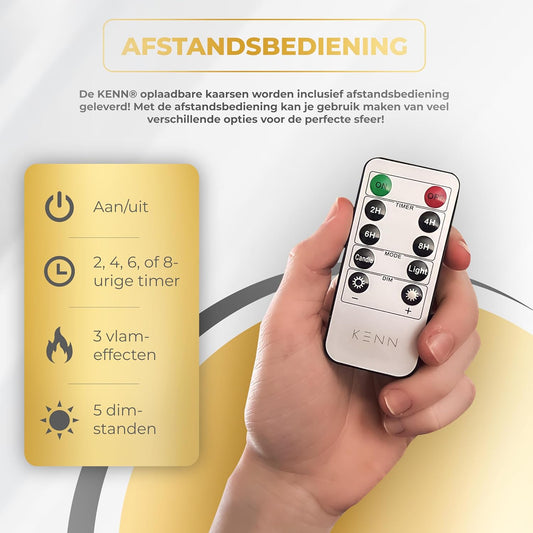 KENN® Oplaadbare led-kaarsen, afstandsbediening inbegrepen